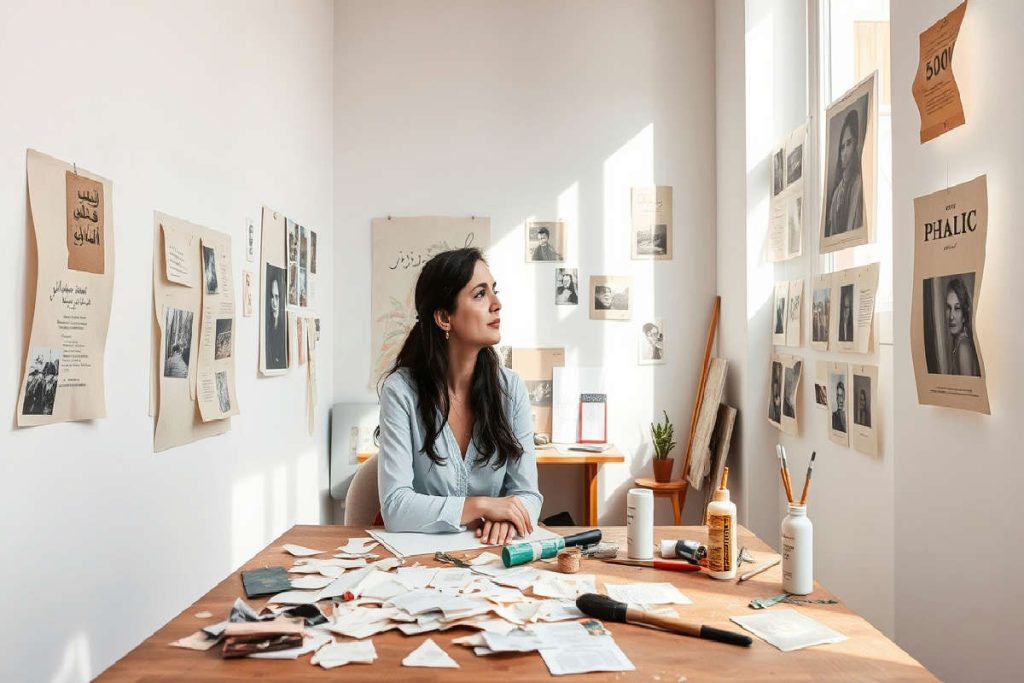 In quegli anni sperimenta materiali come l’inchiostro cinese Sumi-e e si avvicina alla videoarte, utilizzando la sua immagine velata come simbolo centrale nelle performance. Il velo islamico diventa un tema ricorrente, un oggetto che porta con sé riflessioni sull’identità, la visibilità e il controllo.